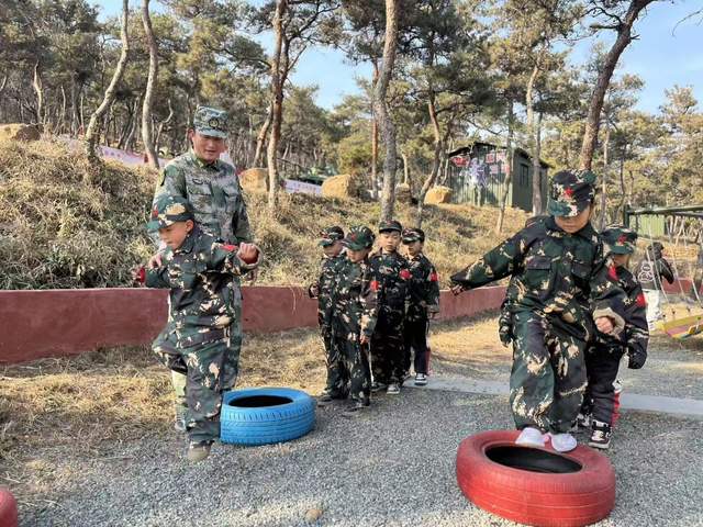 清明节期间,组织亲子家庭走进沂蒙红嫂祖秀莲纪念馆,通过“献花致敬、聆听事迹、模拟祭扫”,让幼儿在庄重氛围中理解“缅怀先烈”的意义;建军节之际,走进西墙峪村史馆,探寻“山纵的村庄”的革命记忆;开展卧龙山国防教育基地研学活动,通过“穿军装、学军姿、听军史”,培育幼儿对军人的崇敬之情;国庆节前后,打卡西墙峪战地医院旧址,通过“角色扮演医护人员”“整理模拟战地物资”,让幼儿在真实场景中感知革命先辈的奉献精神。
