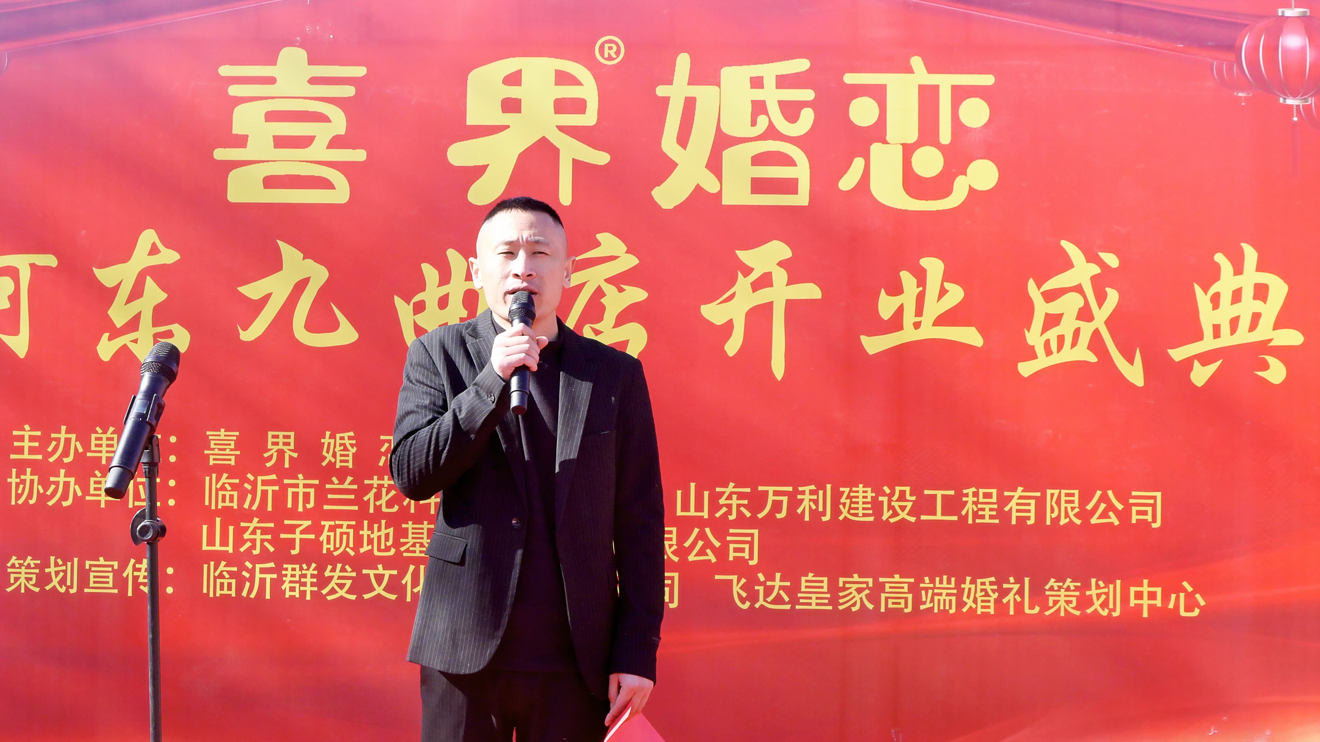 喜界婚恋总店郑洪武总经理也发表讲话。他回顾了品牌的发展历程,对河东九曲店的开业表示热烈祝贺,并承诺将给予门店全方位的资源支持,持续提升服务品质,让喜界婚恋成为临沂婚恋市场的标杆品牌。
