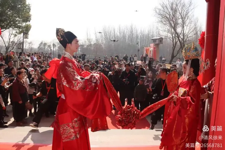 2月14日,千年古镇溱潼南端的溱湖湾鹊仙岛盛装启幕。一场以沉浸式中式婚礼为魂、新春年俗为韵、情人节浪漫为脉的民俗盛典在此铺展——红绸漫卷,礼乐悠扬,花轿巡街,执手盟誓。鹊仙岛化身流动的婚俗长卷,让八方来客于水韵氤氲间,邂逅最中国的新春之喜与永恒之约。