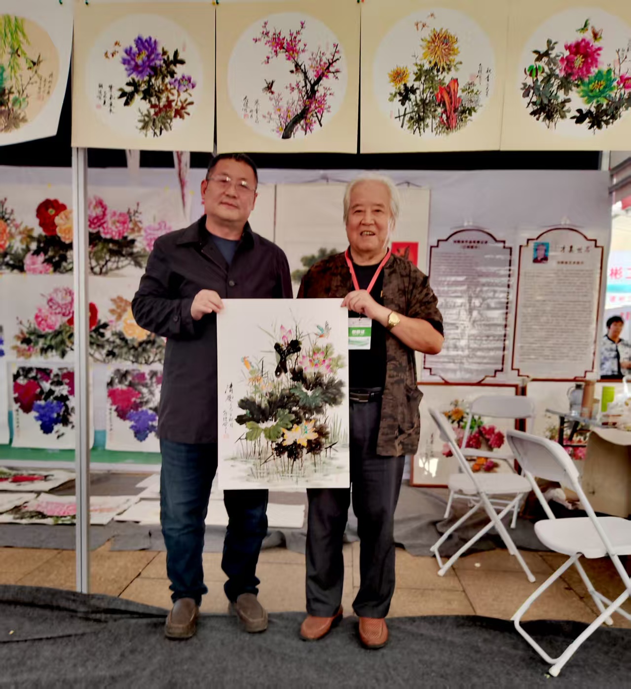 采访画家刘朝波(右)